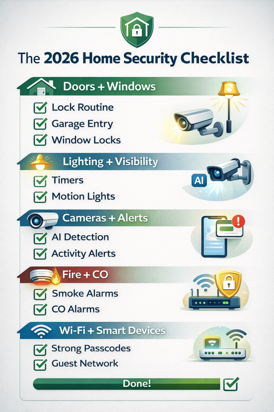 In 2026, home security is not about making one major change. It is about fixing the simple things that make break-ins easier. Most incidents happen because of common weak spots, like an unlocked side door, a dark driveway, a garage that is not well connected to the house, or a smart device with its default password.